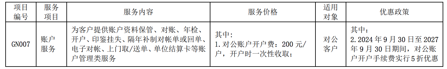 所有对公客户开户手续费的5折优惠政策延长三年。