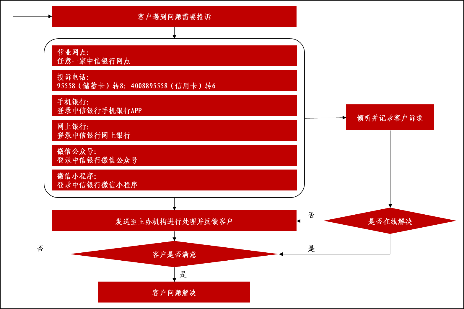本行财富管理部和信用卡中心分别下设客服中心,负责借记卡和信用卡业务投诉处理工作。客服渠道投诉处理专员全程跟踪处理结果,并进行客户回访,确保客诉问题得到及时妥善解决。针对客诉工单处理均设置内部检查机制,主要从服务礼仪、服务用语、致电目的、业务解答准确与熟练度及风险意识操作五个方面进行全流程监控,各项监控指标间设分值,根据回复质量进行打分,纳入绩效考核。本行消费者权益保护办公室收集汇总财富管理部和信用卡中心的投诉处理情况,定期向董、监事会及其下设消费者权益保护委员会汇报全行投诉工作情况。