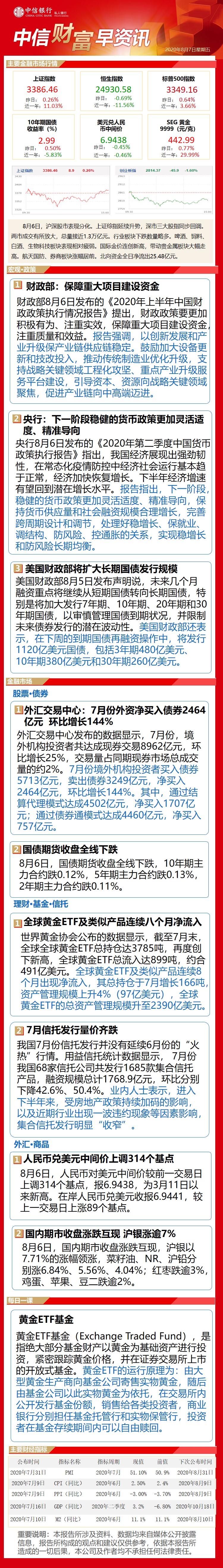 中信财富早资讯8月7日