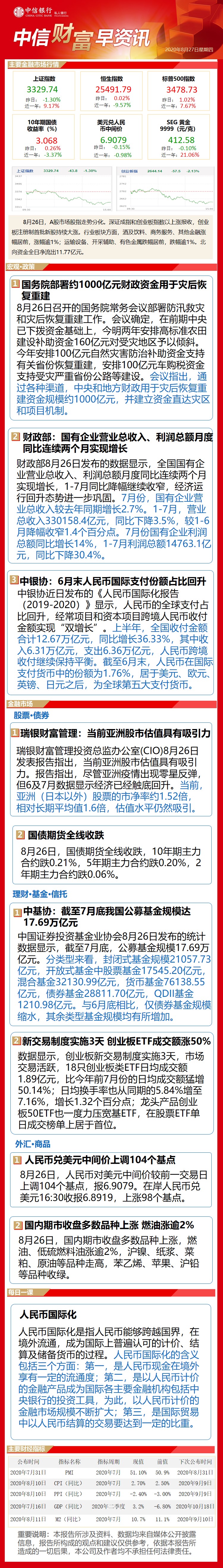 中信财富早资讯8月27日