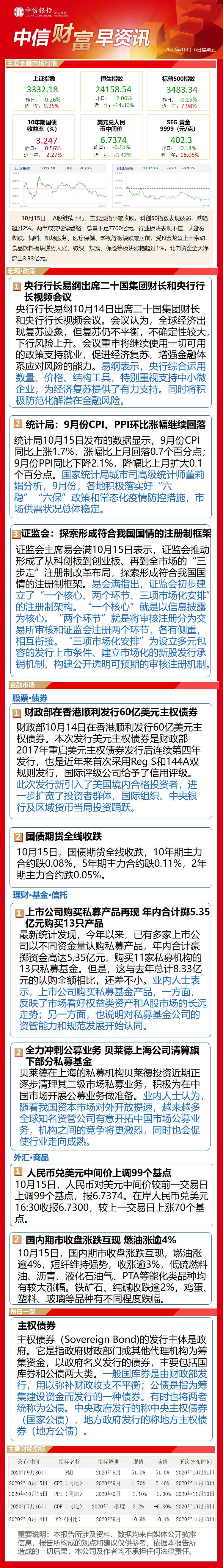 中信财富早资讯10月16日