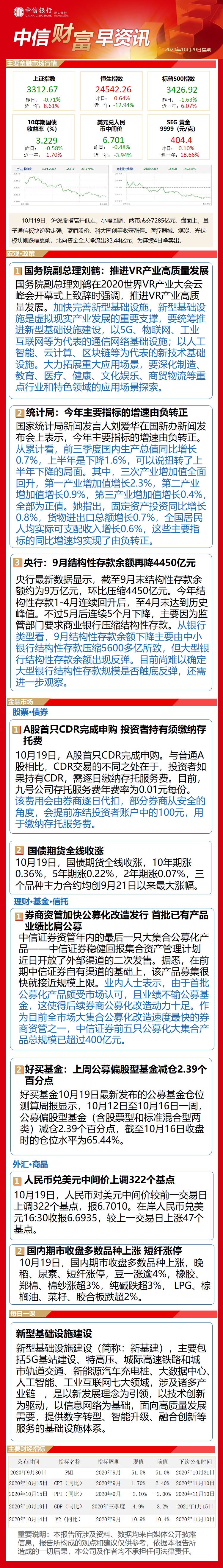 中信财富早资讯10月20日