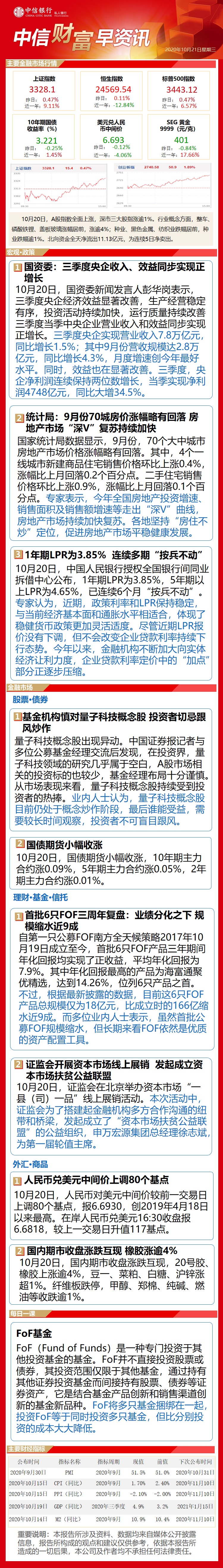 中信财富早资讯10月21日