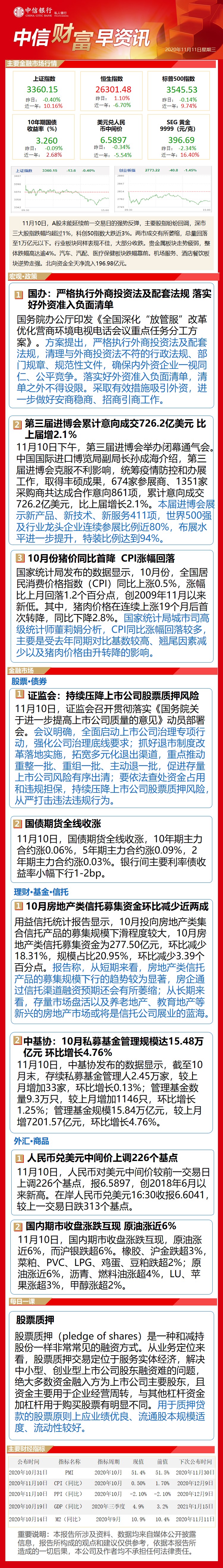 中信财富早资讯11月11日