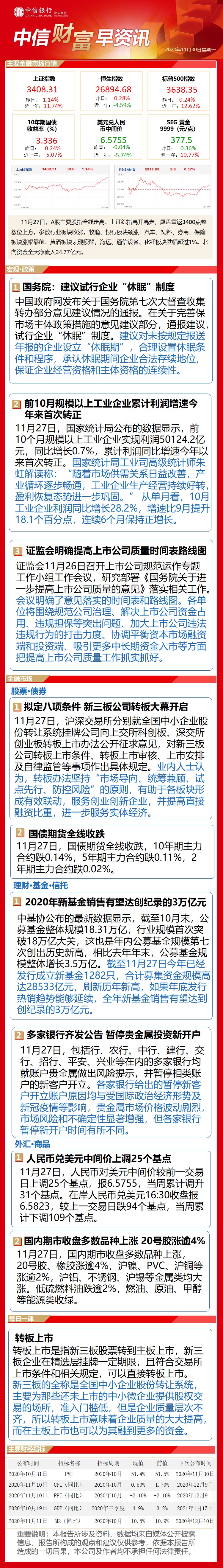 中信财富早资讯11月30日