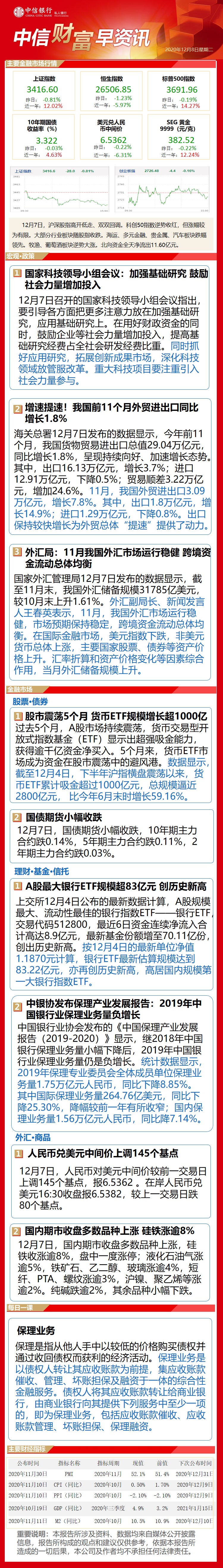 中信财富早资讯12月8日