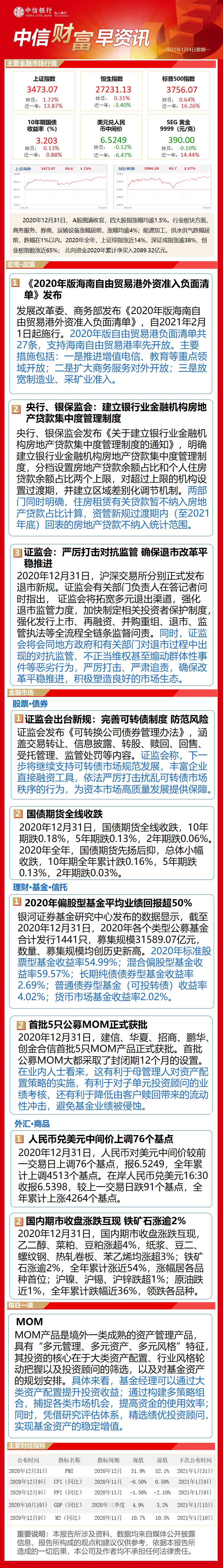 中信财富早资讯1月4日