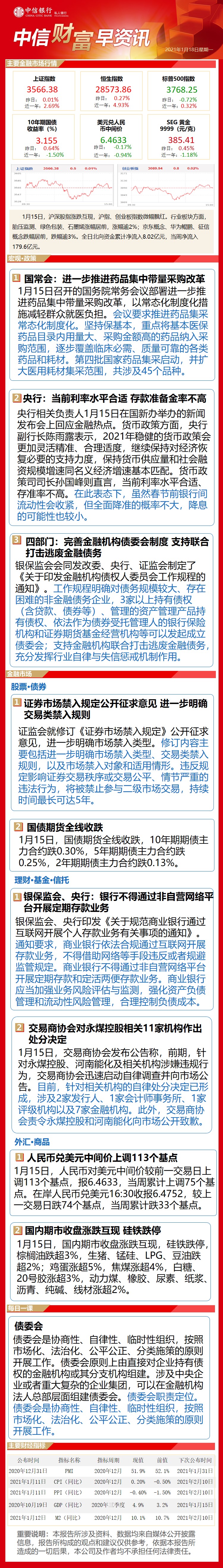 中信财富早资讯1月18日