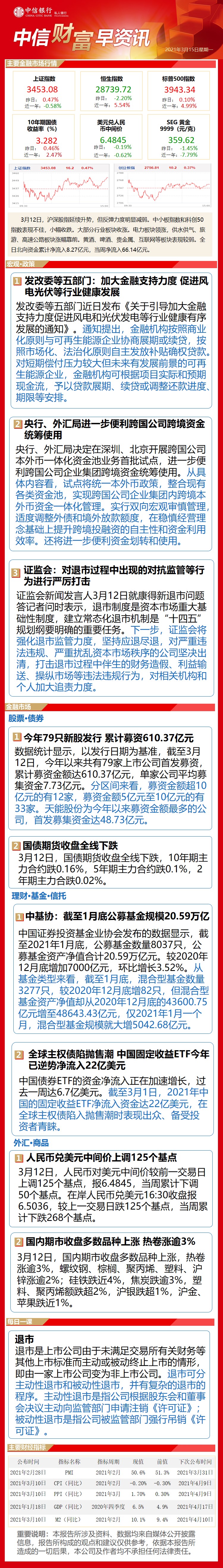 中信财富早资讯3月15日