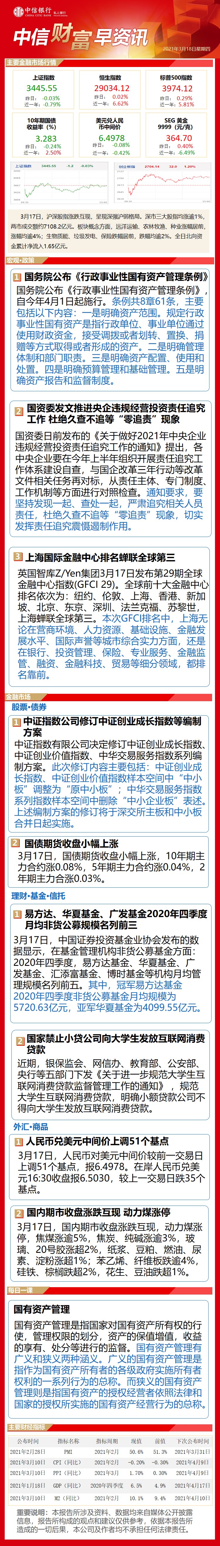 中信财富早资讯3月18日