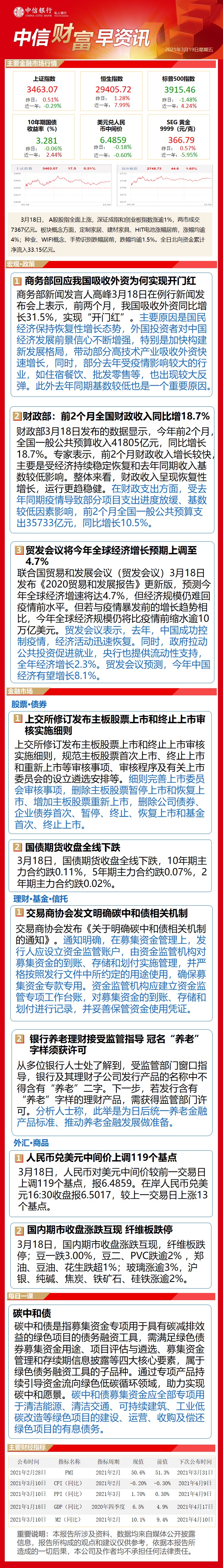 中信财富早资讯3月19日