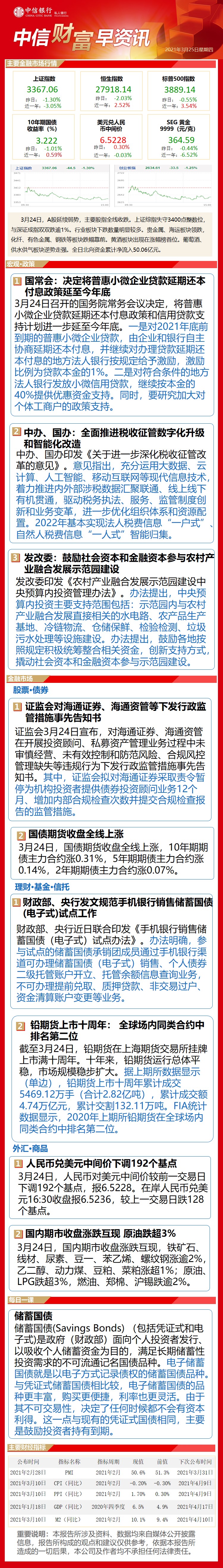 中信财富早资讯3月25日